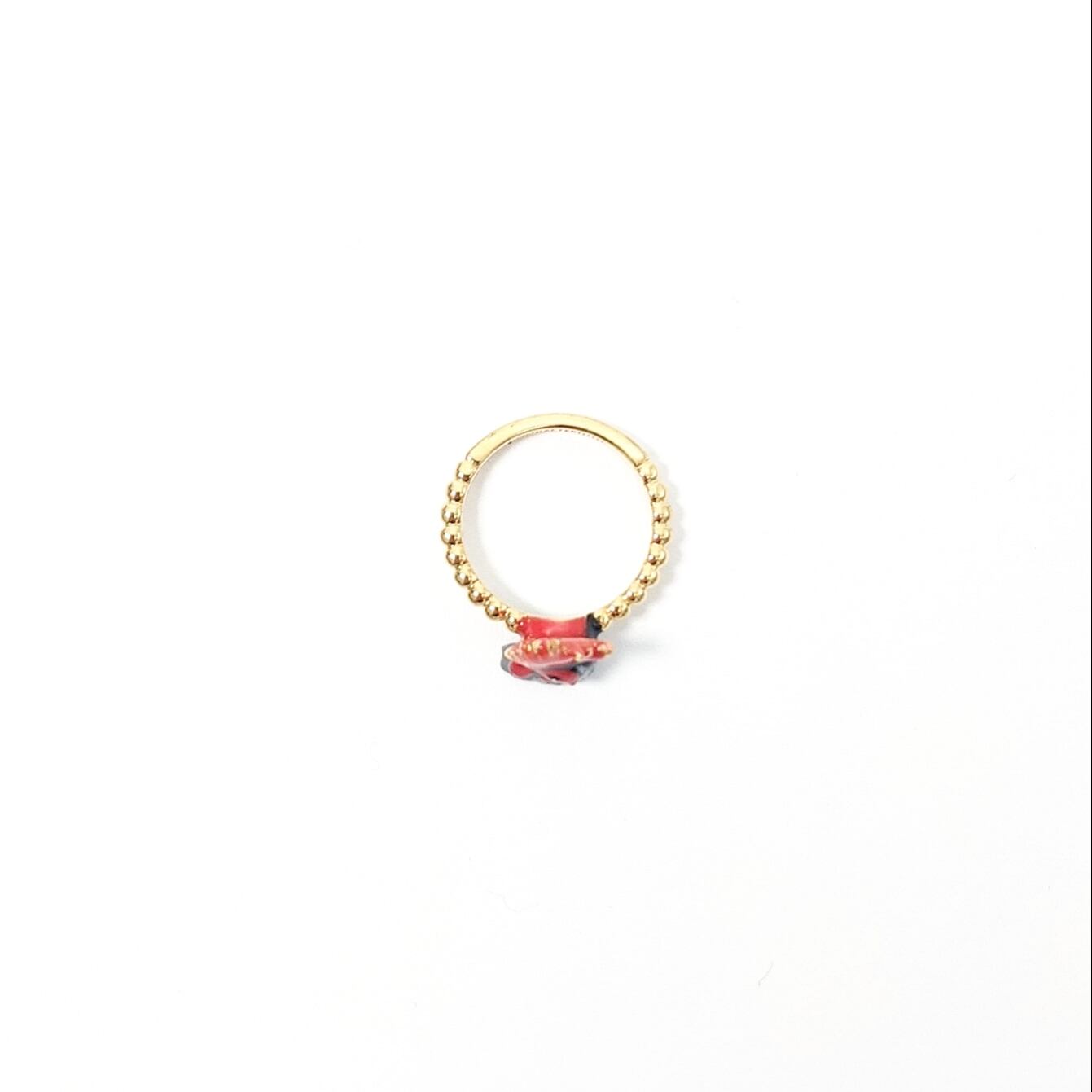 赤い鶏冠(とさか)が美しいニワトリの指輪。