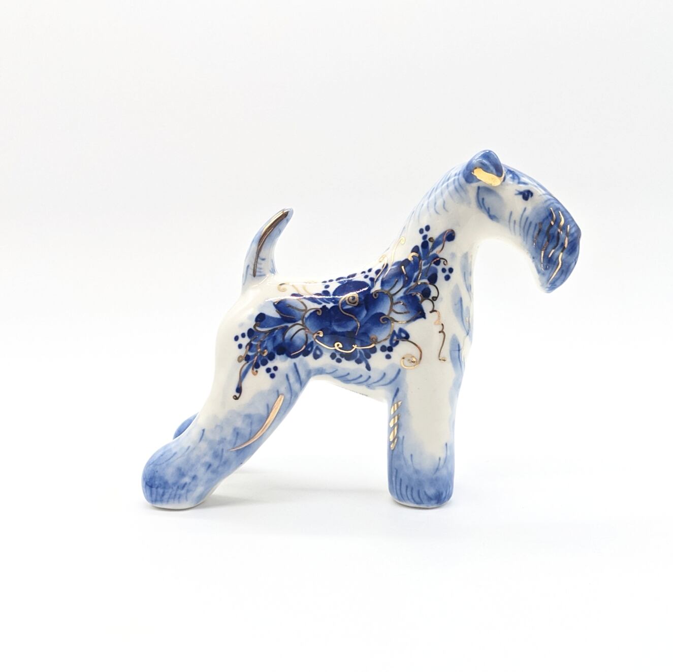 【ロシア/グジェリ陶器】Kelly Blue Terrier