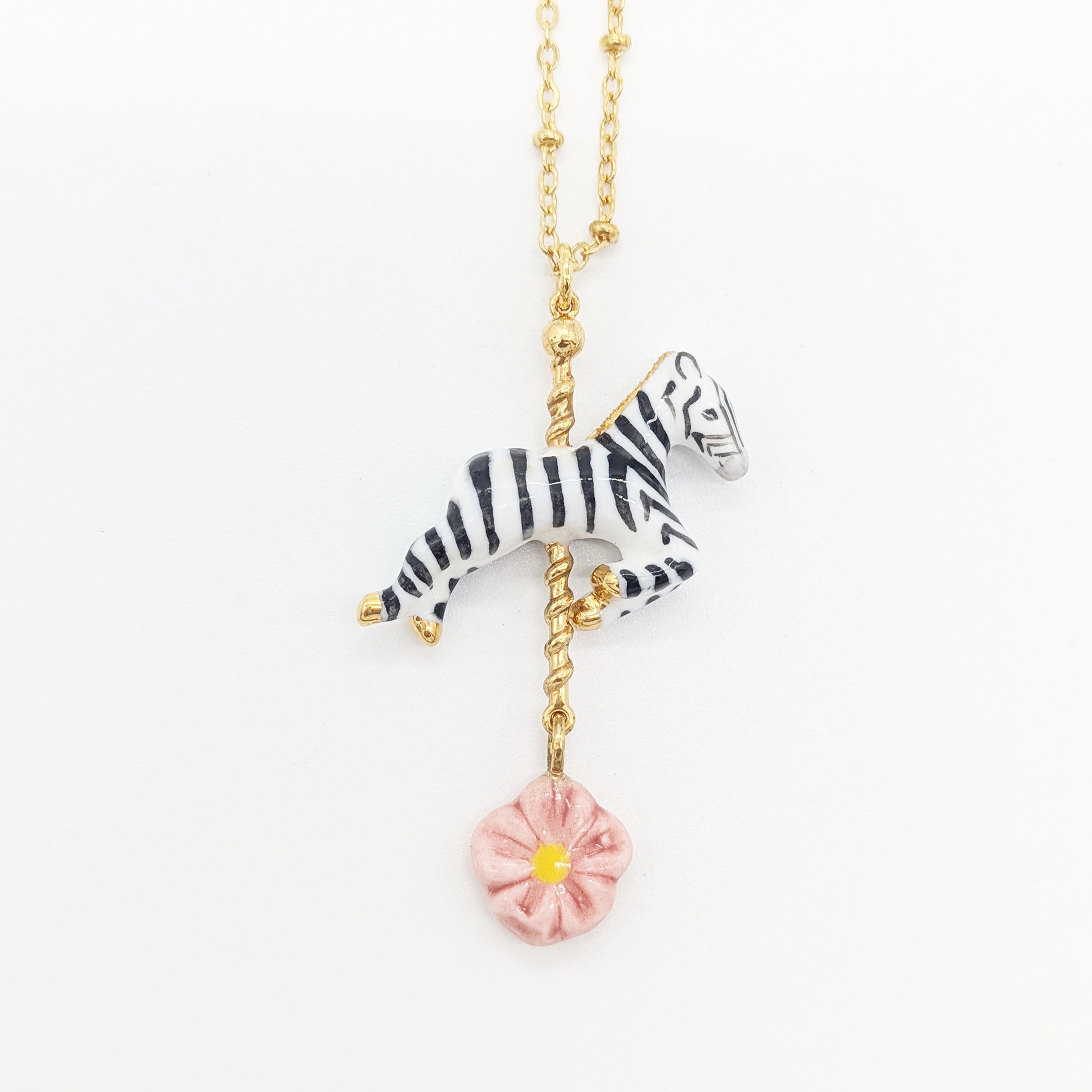 シマウマと花のネックレス。